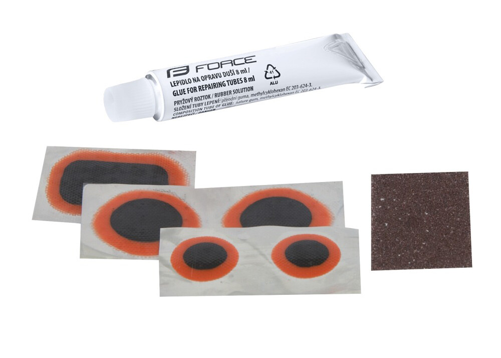 Набор для ремонта камер Force.В комплекте: 5 латок (80х40х20 мм), клей, наждачка.